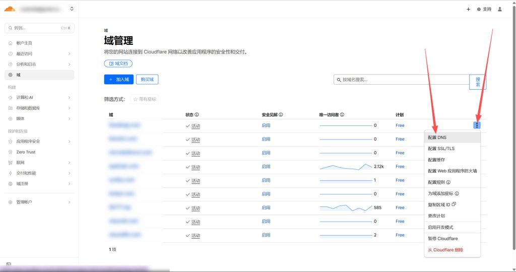 cloudflare加入你购买的域名