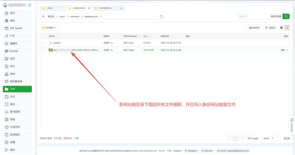 有时候我们觉得服务器太贵了,或者嫌弃这个平台的服务器性价比不高,或者说一个服务器是用来开发用的,网站上线打算用其他服务器!,那么我们如何迁移我们的数据到新的服务器呢?